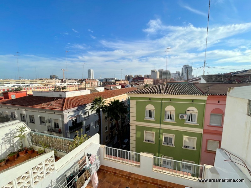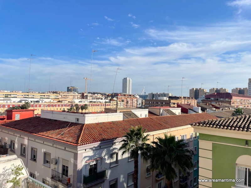 Área Marítima Inmobiliaria, oficina Malvarrosa, comercializa esta vivienda situada en Avenida del Puerto, Valencia, en una séptima planta con ascensor. Una altura que marca la diferencia en el día a día, aportando mayor luminosidad, ventilación y una sensación de amplitud muy valorada en vivienda habitual.